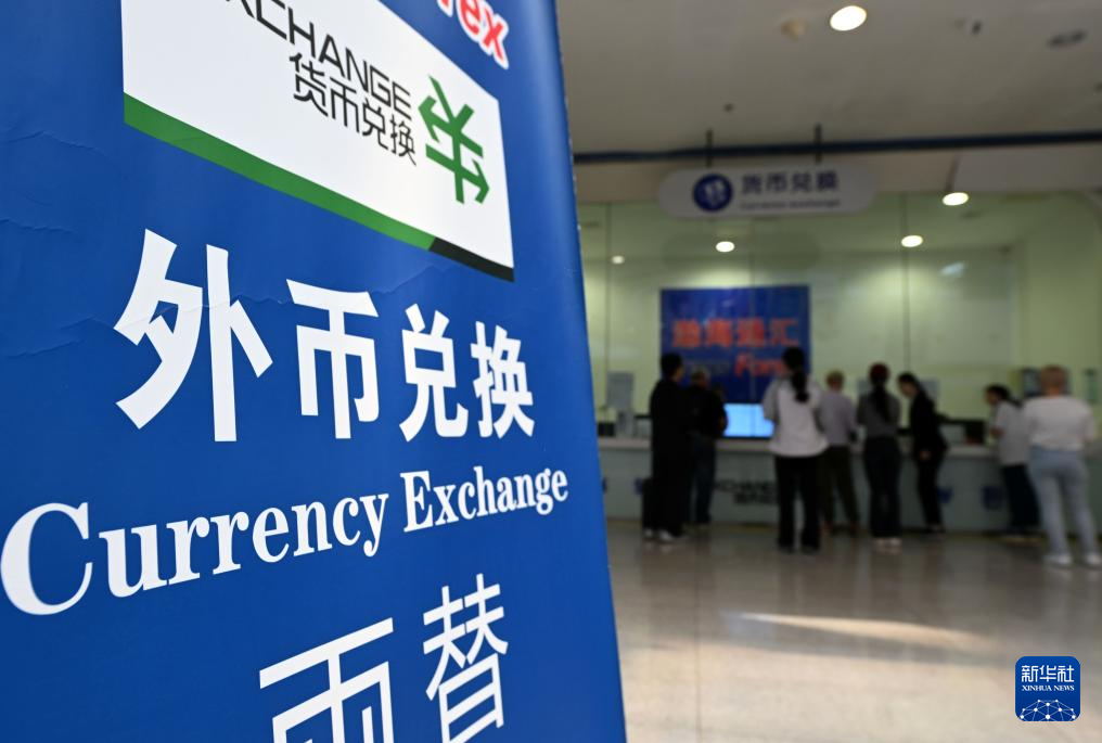 5月1日,游客在天津国际邮轮母港办理外币兑换。