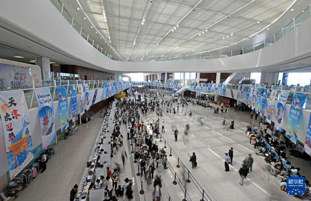 这是5月1日拍摄的天津国际邮轮母港客运大厅。