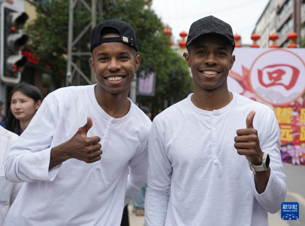 这是5月1日在墨江县双胞胎节上拍摄的一对来自乍得的双胞胎。