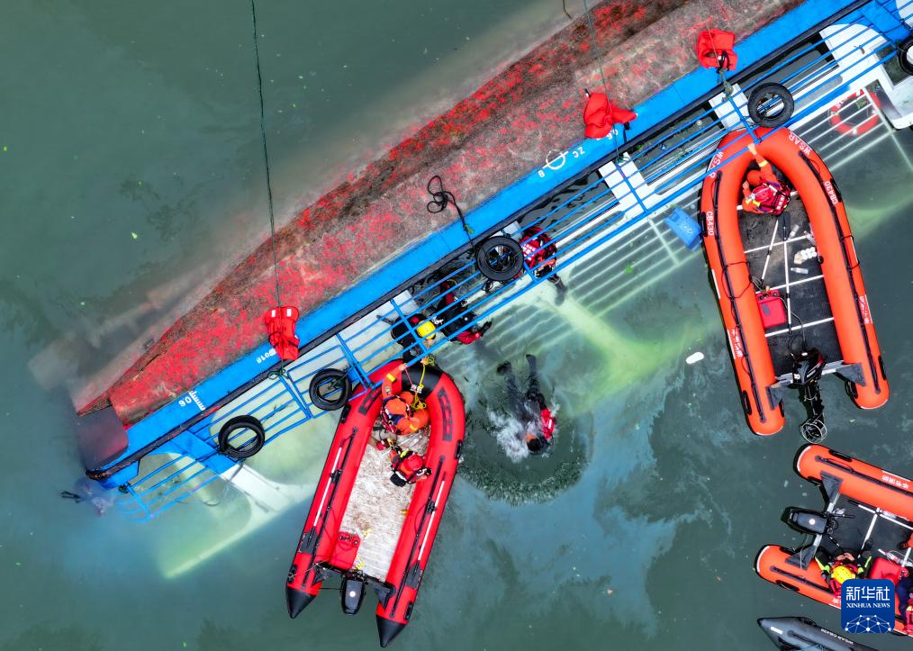 5月5日,救援人员在对倾覆船只进行搜救(无人机照片)。
