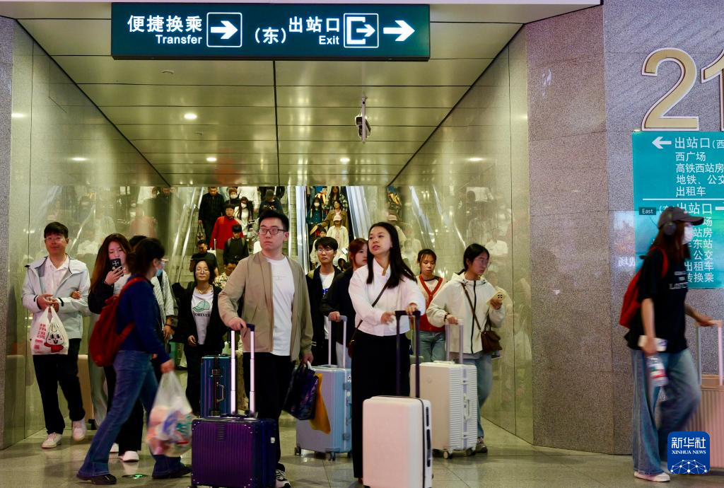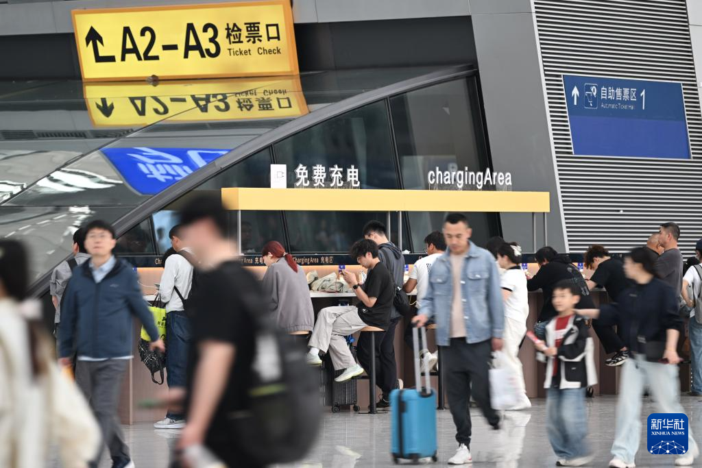 5月5日,旅客在江苏徐州东站换乘通道换乘。