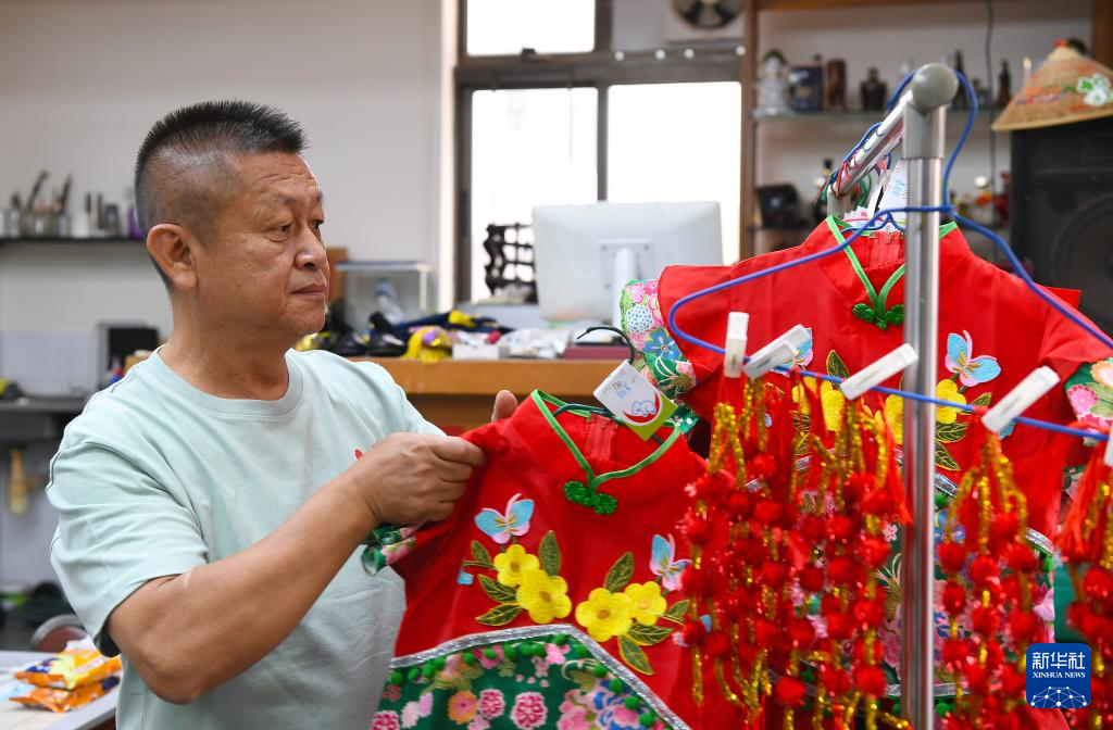 4月30日,飘色师傅李智伟在检查他负责制作的“哪吒”主题飘色。