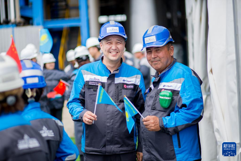5月5日,嘉宾出席在哈萨克斯坦阿克套举行的里海沥青厂扩能升级改造项目投产仪式。