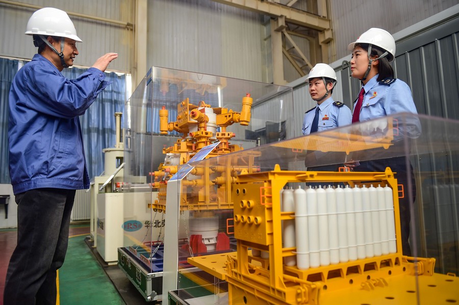 沧州任丘一家石油机械制造企业,税务工作人员调研企业新产品研发情况,帮助企业合规享受税收优惠政策。
