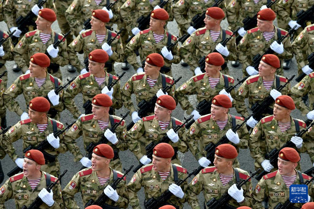 5月7日,在俄罗斯首都莫斯科,士兵列队准备参加纪念苏联伟大卫国战争胜利80周年阅兵式彩排。