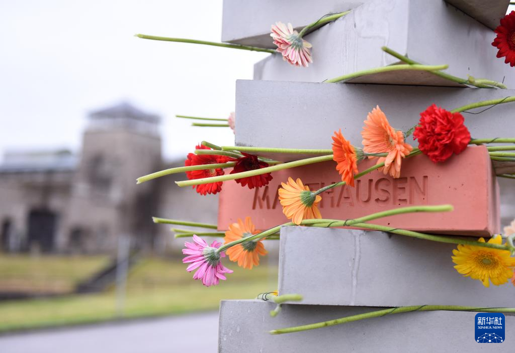 5月5日,在奥地利上奥州首府林茨附近,毛特豪森集中营纪念馆一处新落成的纪念碑上放满了鲜花。