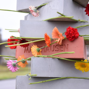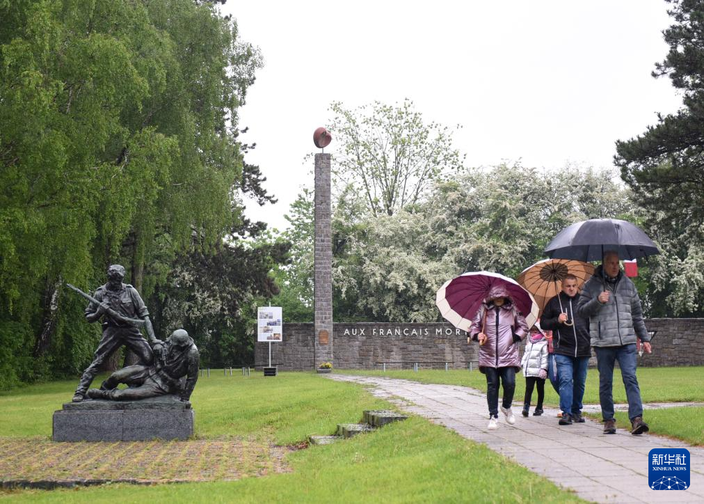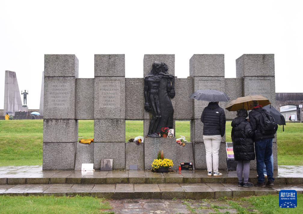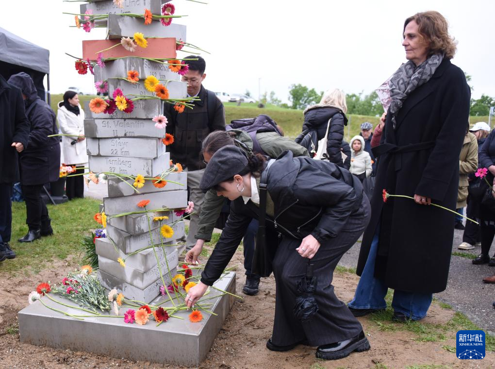 5月5日,在奥地利上奥州首府林茨附近,人们向毛特豪森集中营纪念馆一处新落成的纪念碑献花。