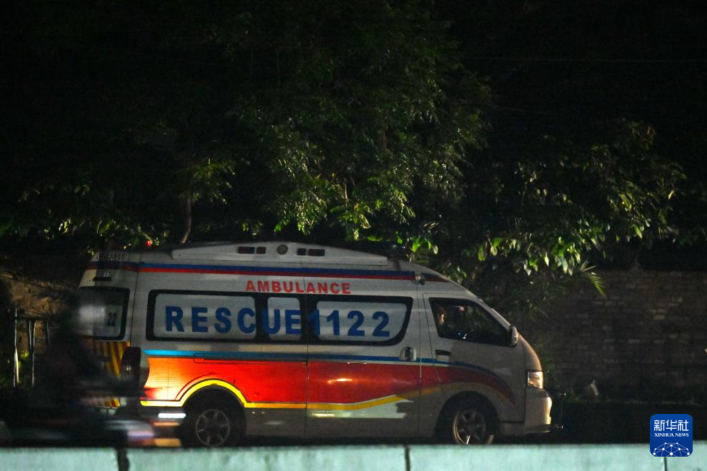 5月10日,一辆救护车抵达巴基斯坦拉瓦尔品第的努尔·汗空军基地附近。