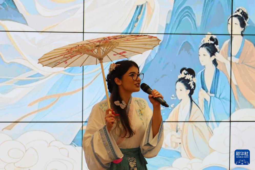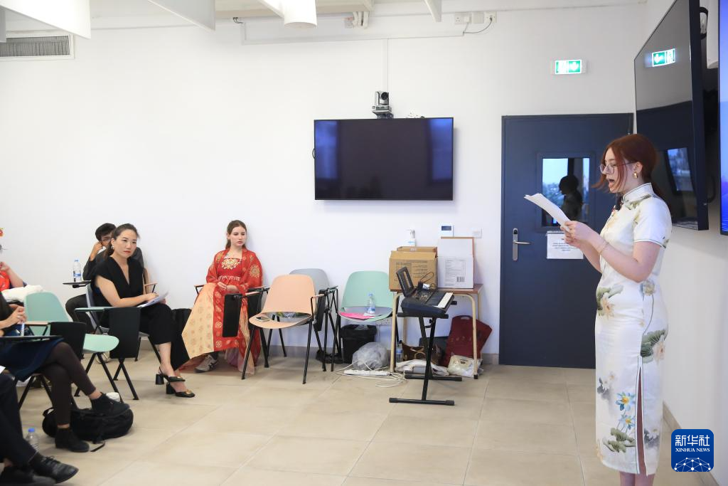 5月10日,在罗马尼亚克卢日-纳波卡,选手在第24届“汉语桥”世界大学生中文比赛罗马尼亚赛区决赛上展示才艺。