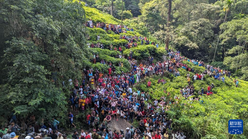 5月11日,在位于斯里兰卡中部地区的科特马莱,人们聚集在巴士坠崖事故现场。