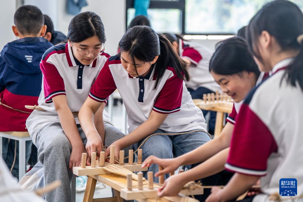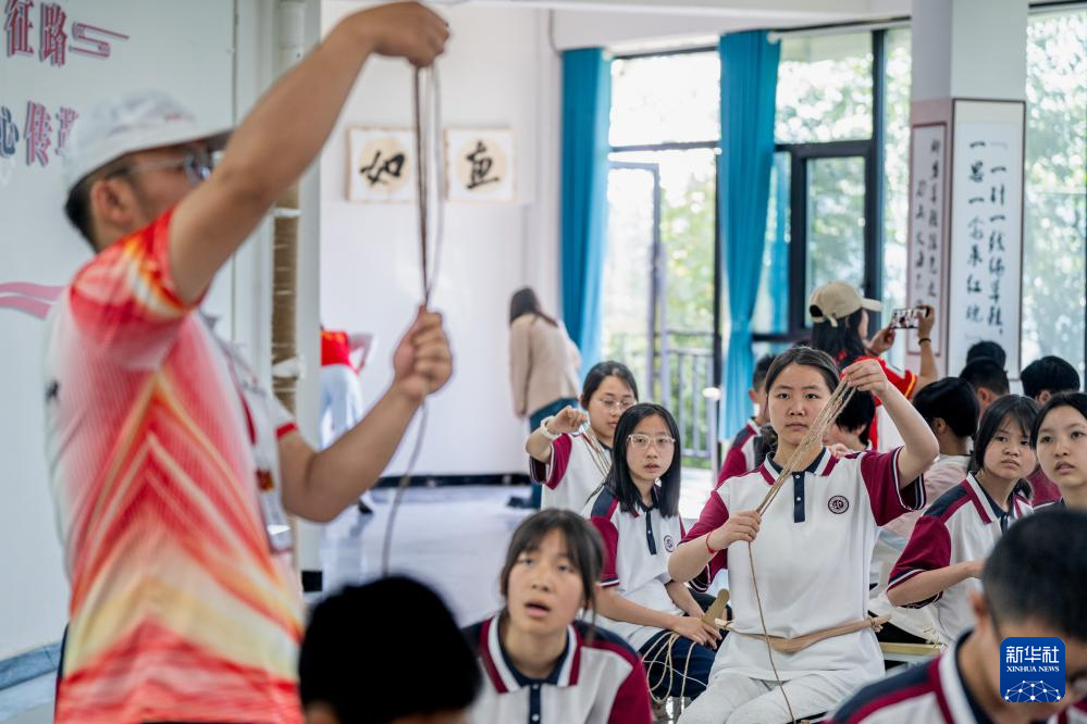 5月12日,云南省昭通市威信县第一中学组织开展一堂别开生面的思政课。200余名学生在红色研学实践基地亲手编织草鞋、制作蜡染,并参观了扎西会议旧址、红军长征过云南情景体验馆,在实践互动中重温红色革命历史。