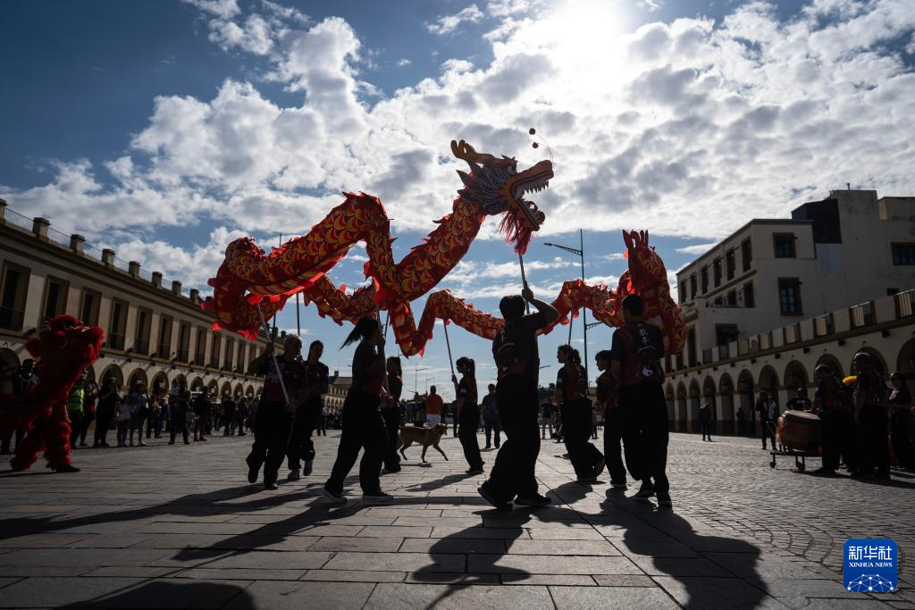 2025年5月4日,人们在阿根廷卢汉举行的“中国在卢汉”文化节上表演舞龙。