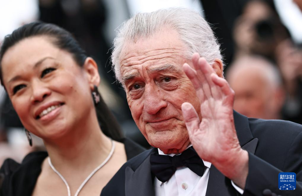 5月13日,在法国戛纳举行的第78届戛纳国际电影节上,美国演员、导演兼制片人罗伯特·德尼罗(前左)亮相开幕式红毯。在开幕式上,罗伯特·德尼罗获颁荣誉金棕榈奖,以表彰其终身成就。
