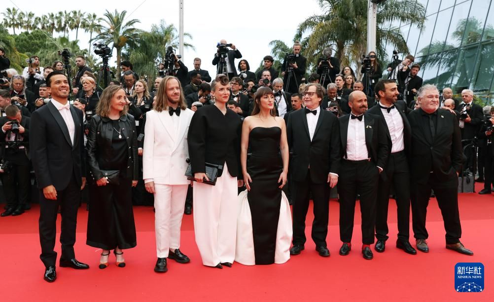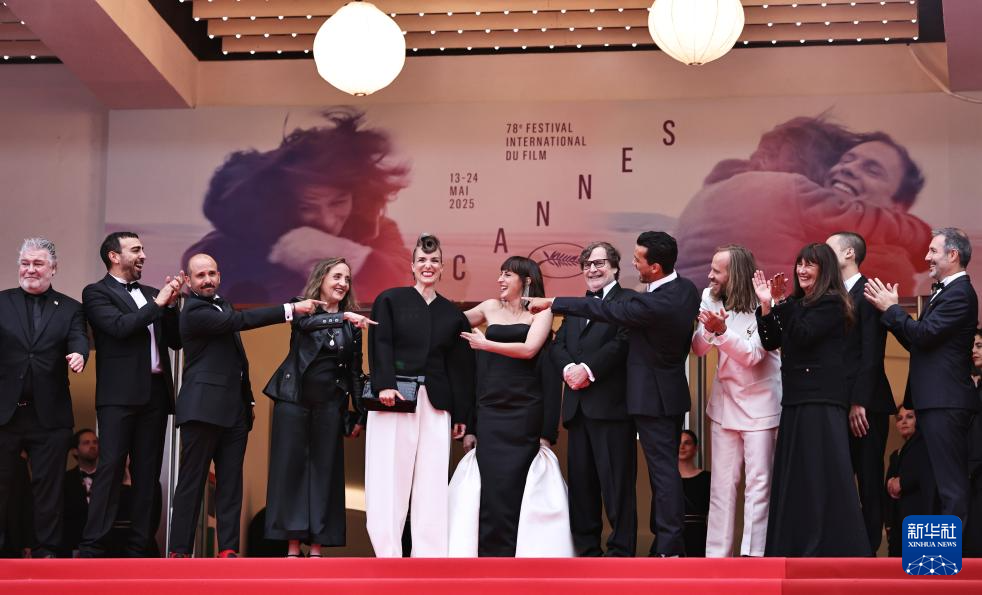 5月13日,在法国戛纳举行的第78届戛纳国际电影节上,法国导演阿梅莉·博南(左五)携开幕影片《启程之日》主创人员亮相开幕式红毯。