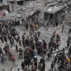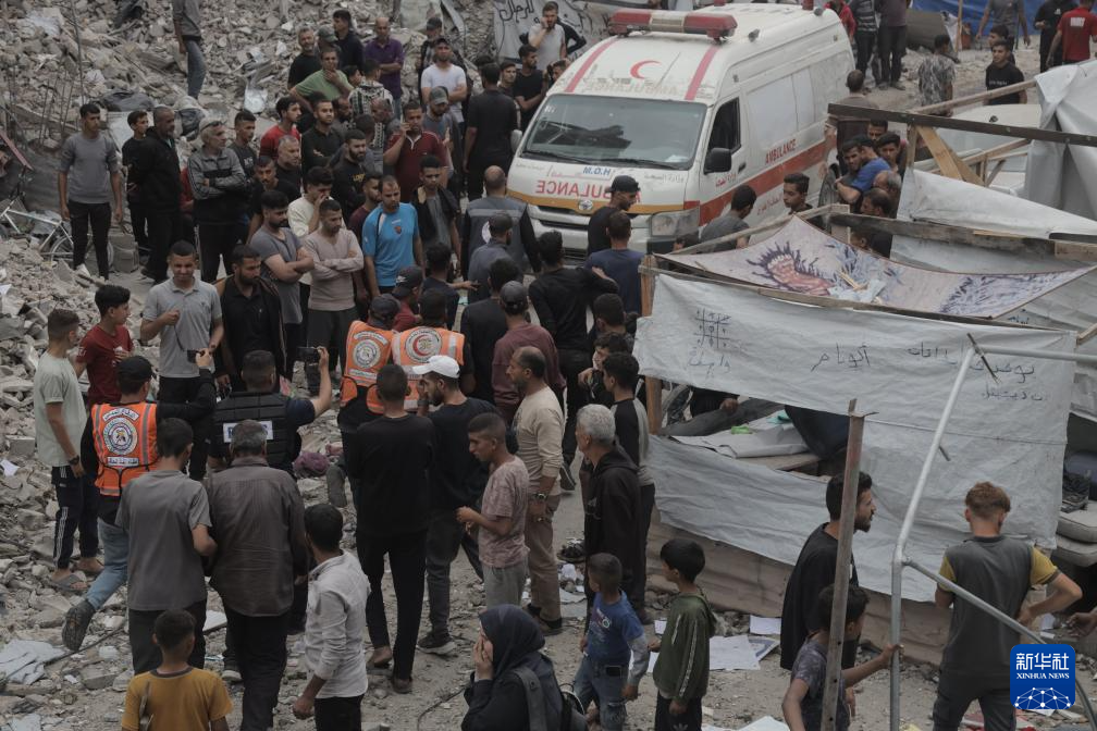 5月15日,在加沙地带北部杰巴利耶难民营,人们在以军轰炸后开展救援。
