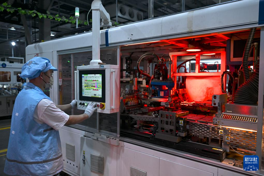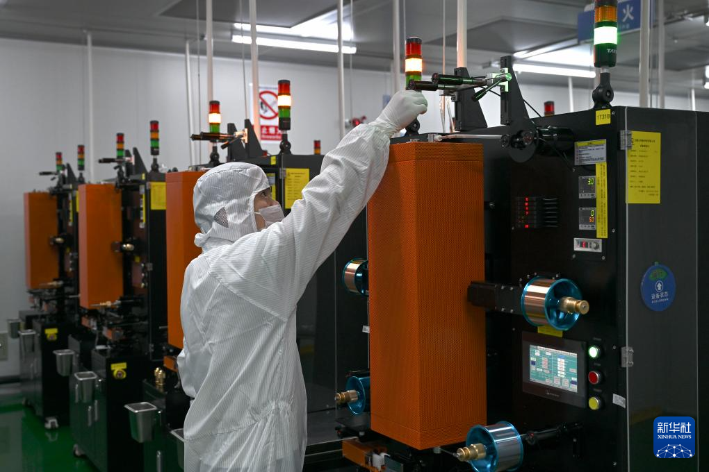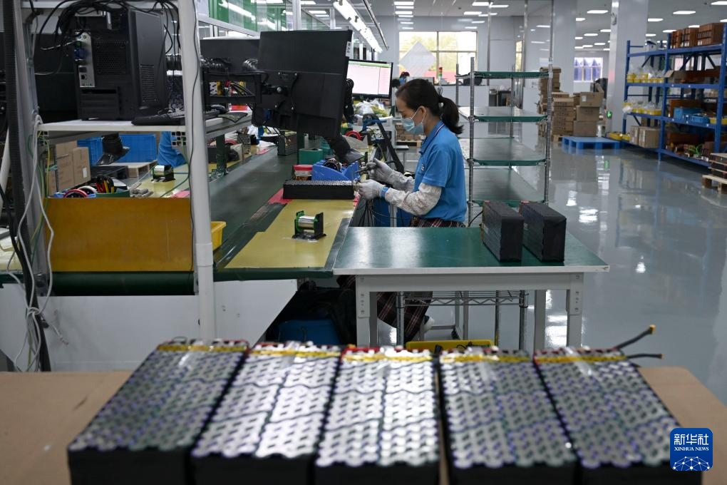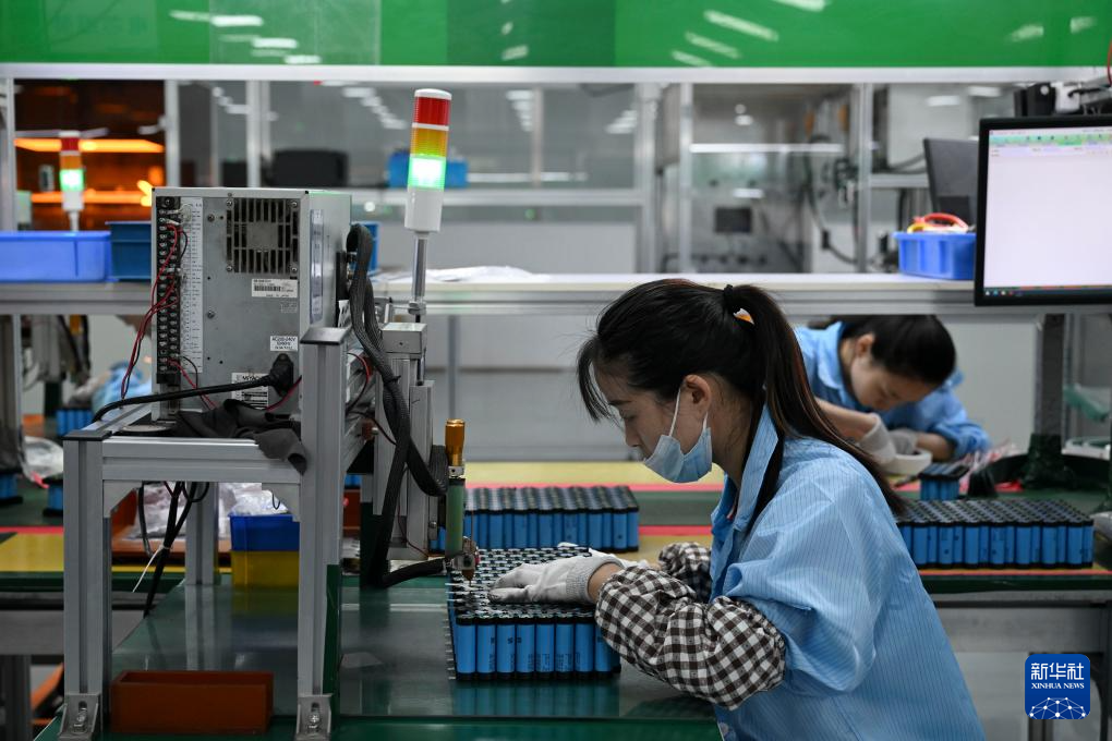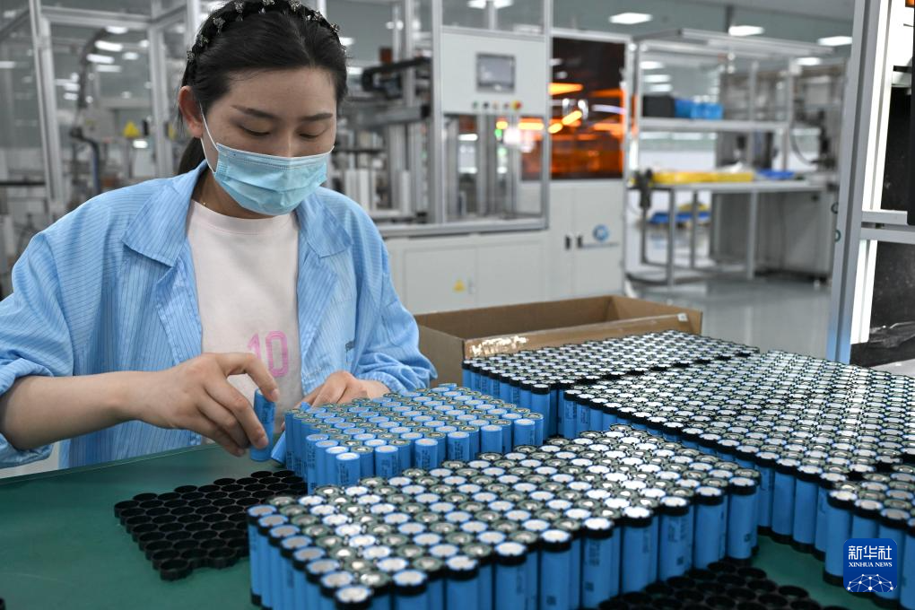 5月14日,工作人员在安徽超锂电子科技有限公司的生产车间组装锂电池。