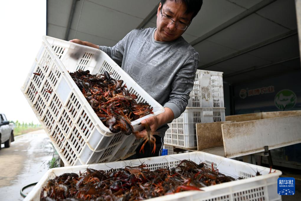 立夏过后,小龙虾消费市场日渐火热。在安徽省蚌埠市五河县沱湖乡大岗村,养殖户们忙着捕捞、分拣小龙虾,供应市场。近年来,五河县依托当地优质水域资源,大力发展小龙虾养殖业。目前,五河县小龙虾养殖面积约6万亩,年产量达8000吨。