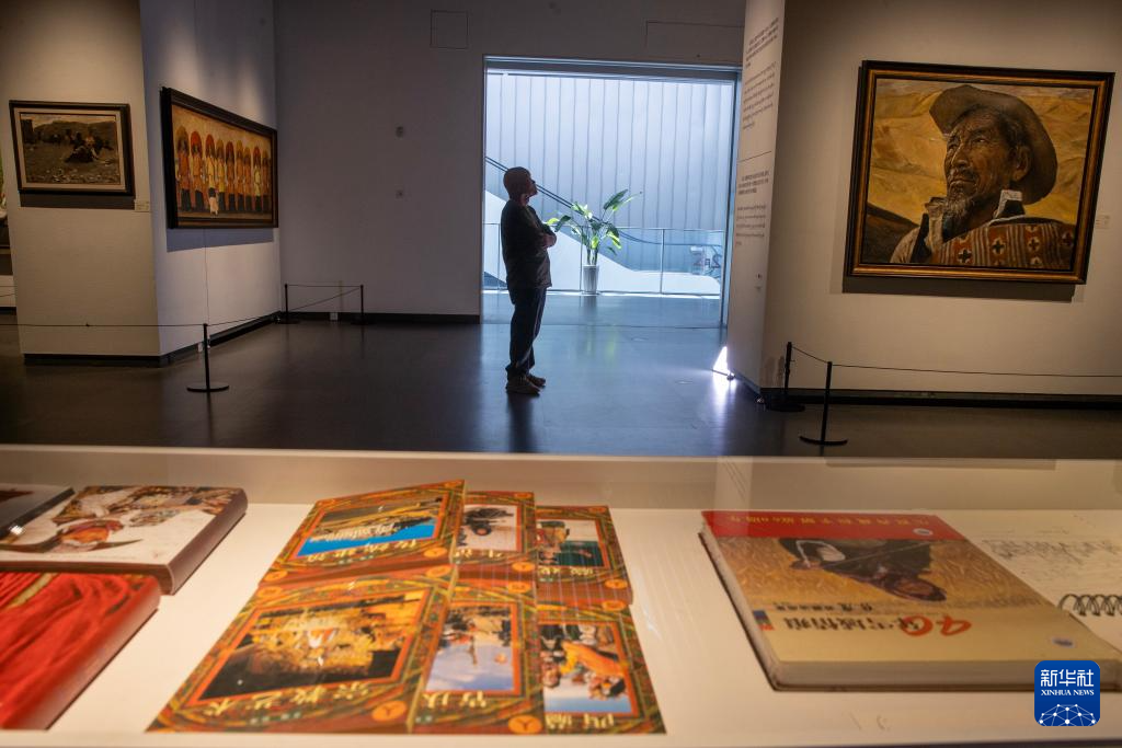 观众在西藏美术馆参观张鹰的画展(5月13日摄)。
