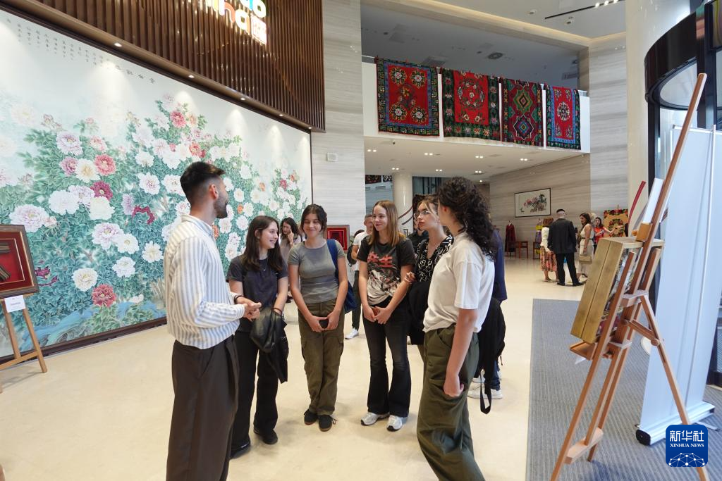 5月15日,在塞尔维亚首都贝尔格莱德,当地学生参观“中塞人民友谊70年——文化遗产的桥梁”主题展。
