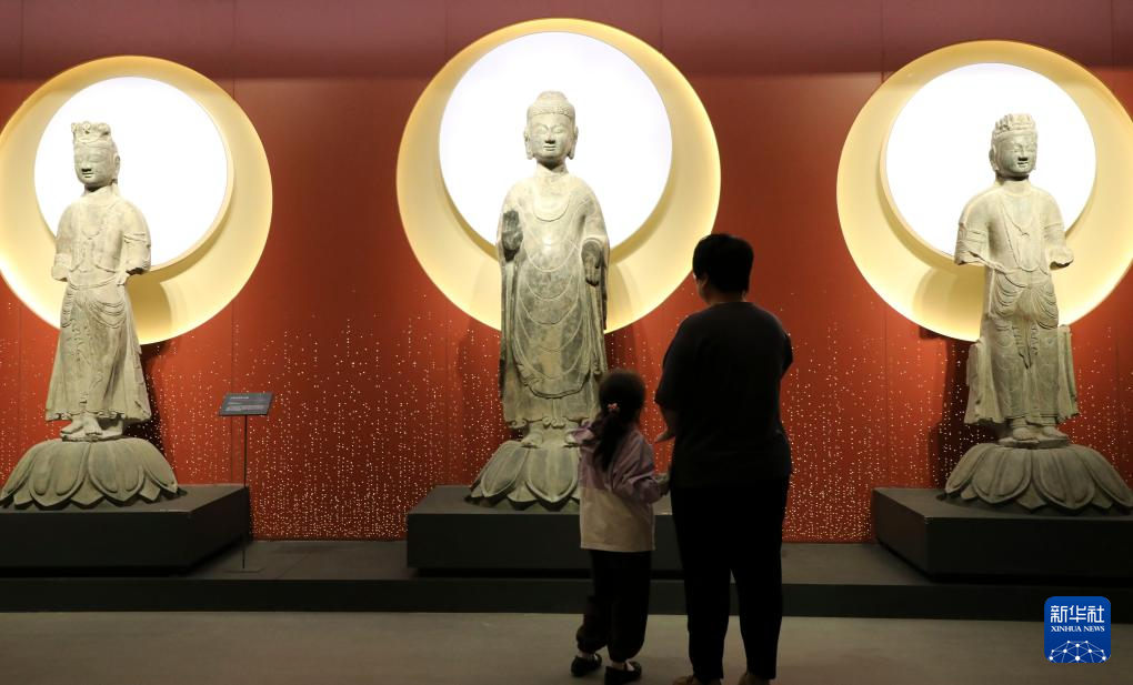 5月17日,游客在山东省青州博物馆拍摄展出的文物。
