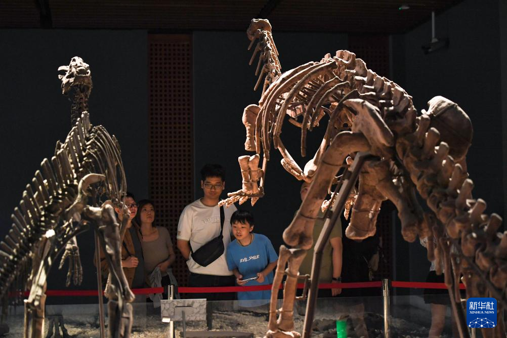 5月17日,两名小女孩在重庆自然博物馆重庆厅参观。