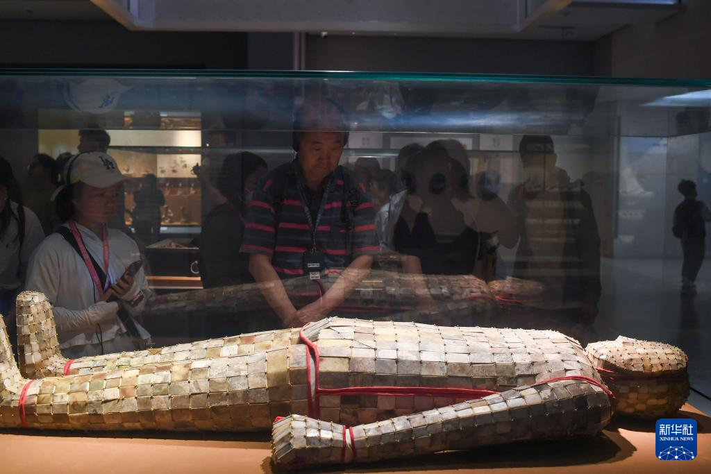5月17日,游客在山东省临沂市郯城县博物馆参观。