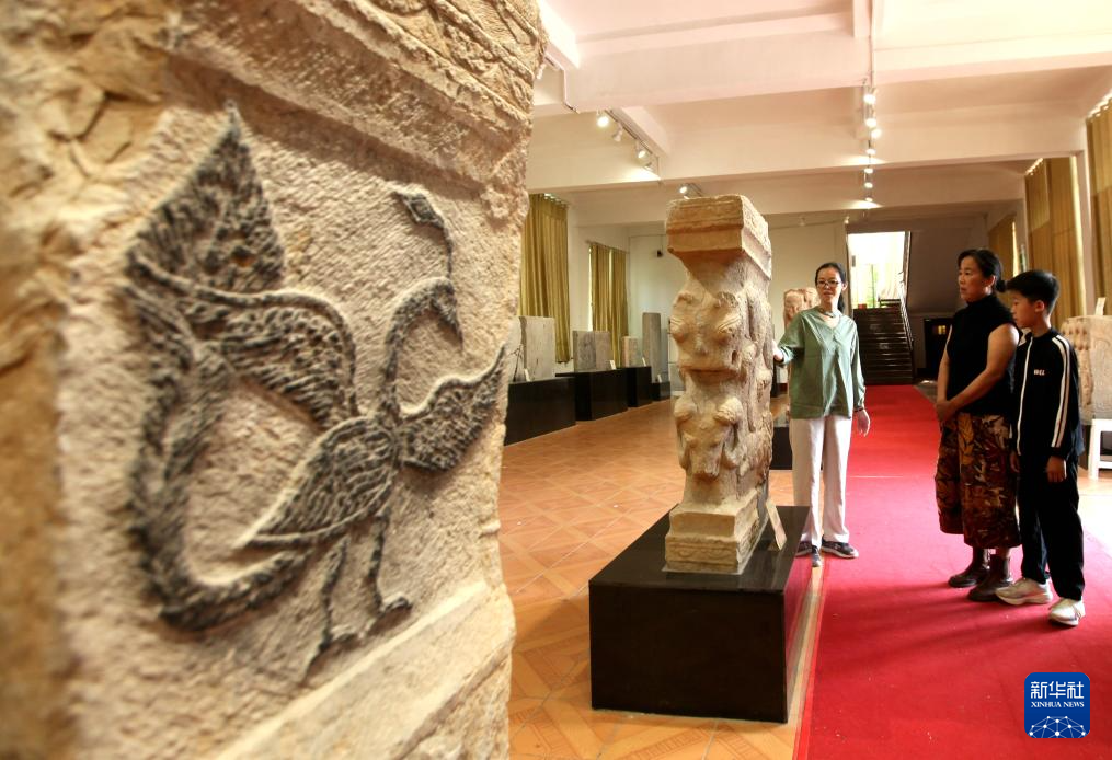 5月17日,人们在山东省枣庄市博物馆内参观。