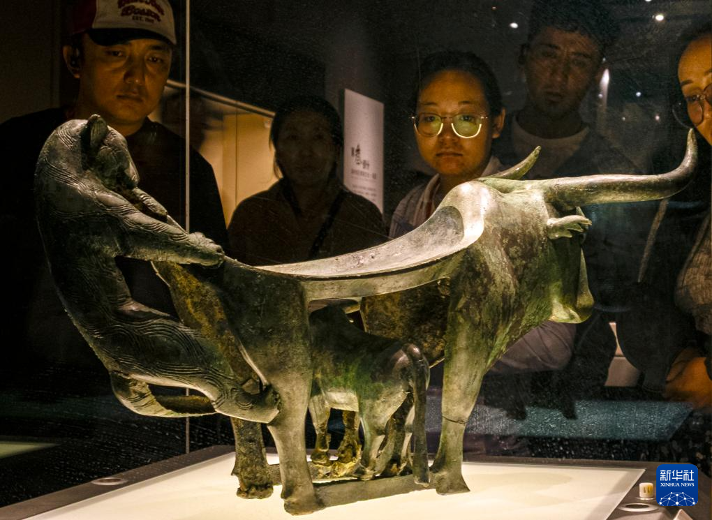 5月16日,人们在云南省博物馆参观青铜器“牛虎铜案”。