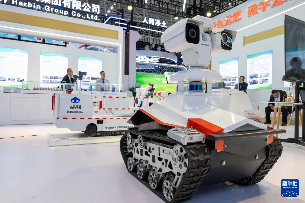 这是5月19日在哈洽会主会场拍摄的矿用机器人。