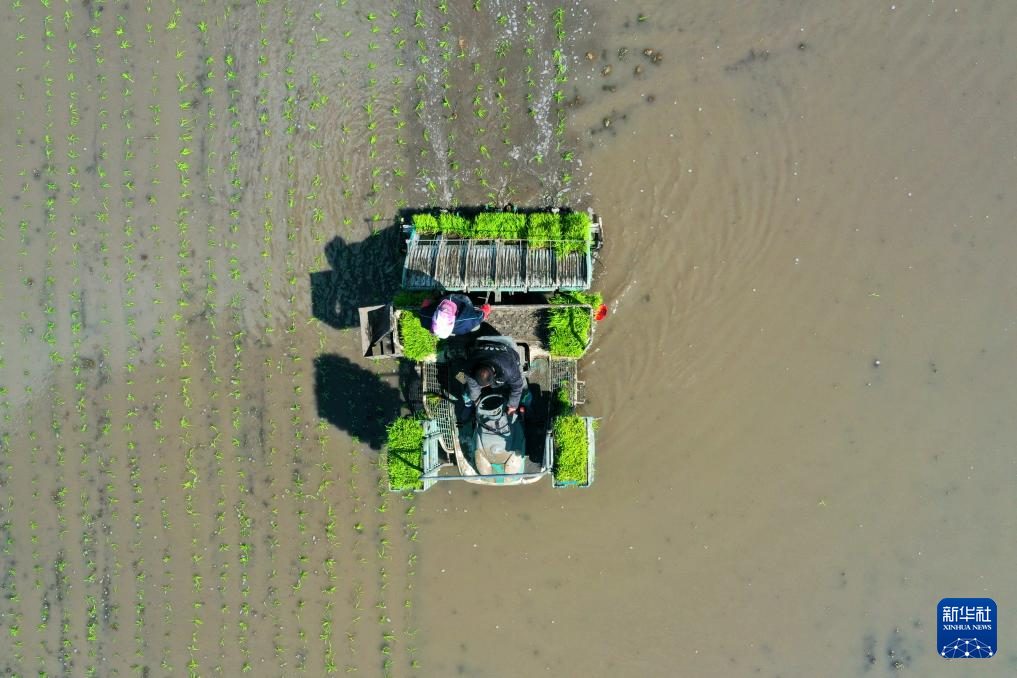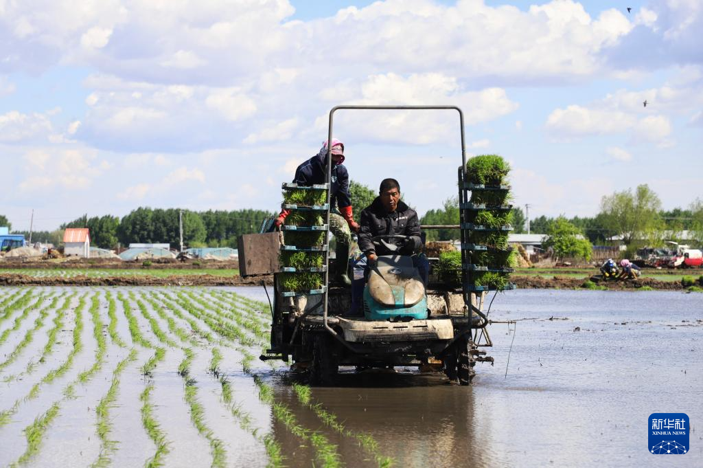 5月19日,农民驾驶农机在内蒙古兴安盟突泉县东杜尔基镇明星村的稻田里插秧。