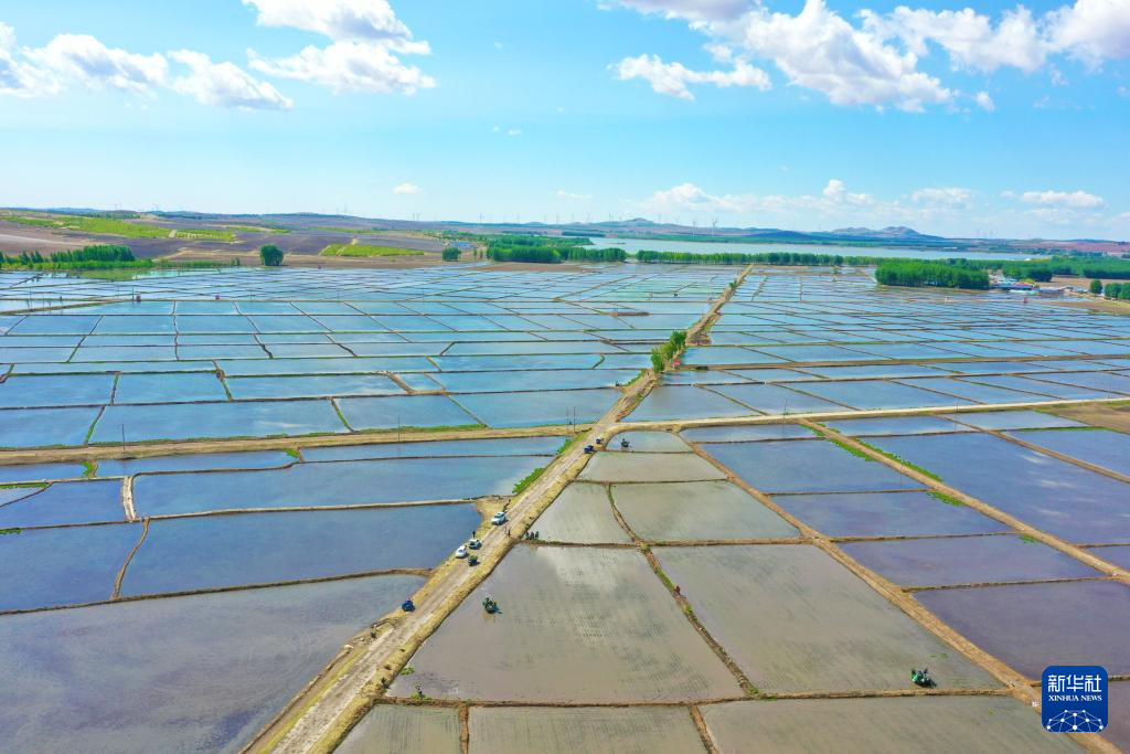 5月19日拍摄的内蒙古兴安盟突泉县东杜尔基镇明星村的稻田(无人机照片)。