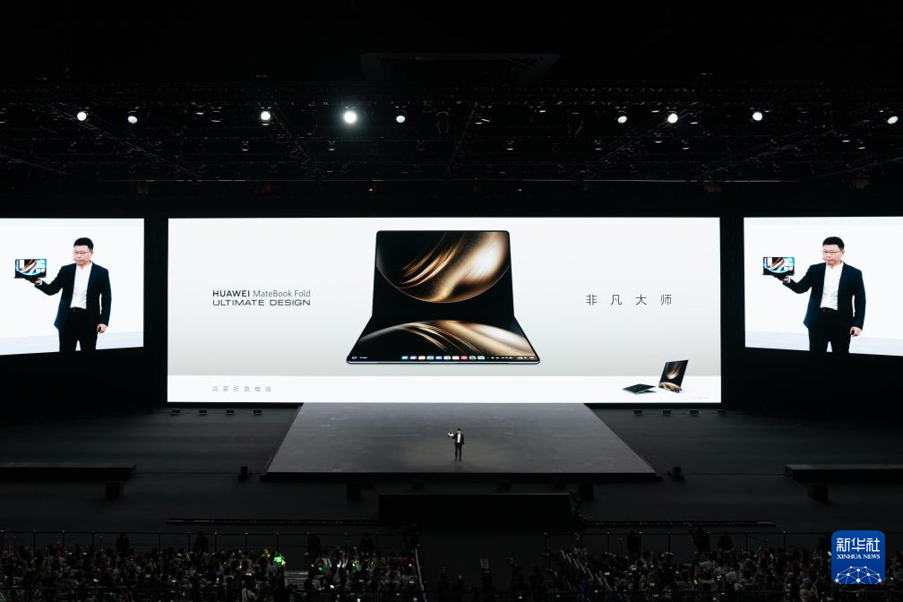 5月19日,华为常务董事、终端BG董事长余承东在发布会上介绍HUAWEI MateBook Fold非凡大师电脑。