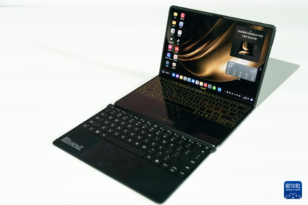 图为发布的HUAWEI MateBook Fold非凡大师实体键盘与虚拟键盘。