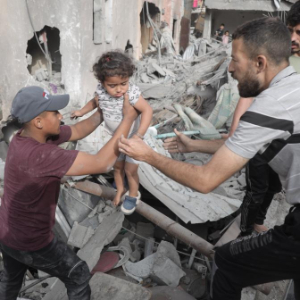 这是5月18日在加沙地带北部杰巴利耶难民营拍摄的搜救现场。