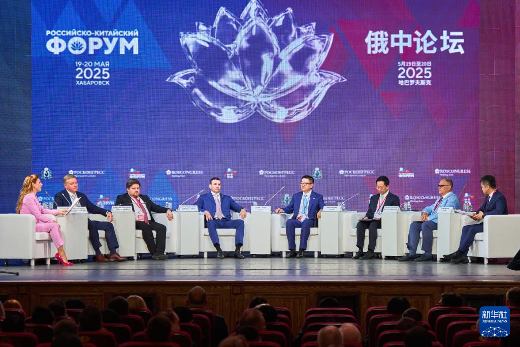 这是5月19日在俄罗斯哈巴罗夫斯克拍摄的“俄中论坛”全体会议现场。