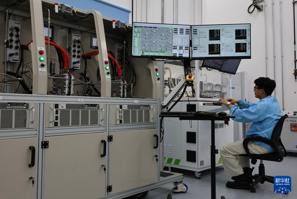 这是上海氢器时代科技有限公司的碱性电解槽全功率测试平台(4月24日摄)。