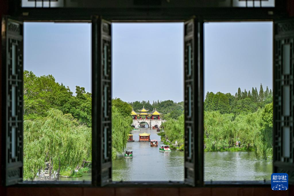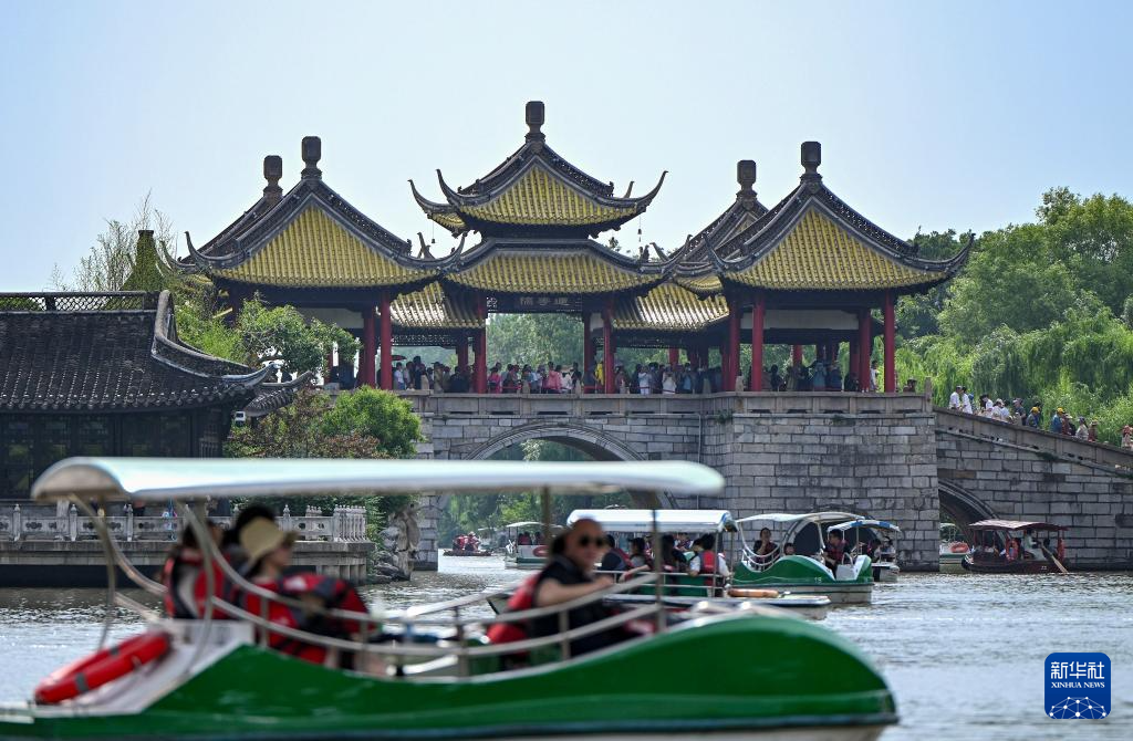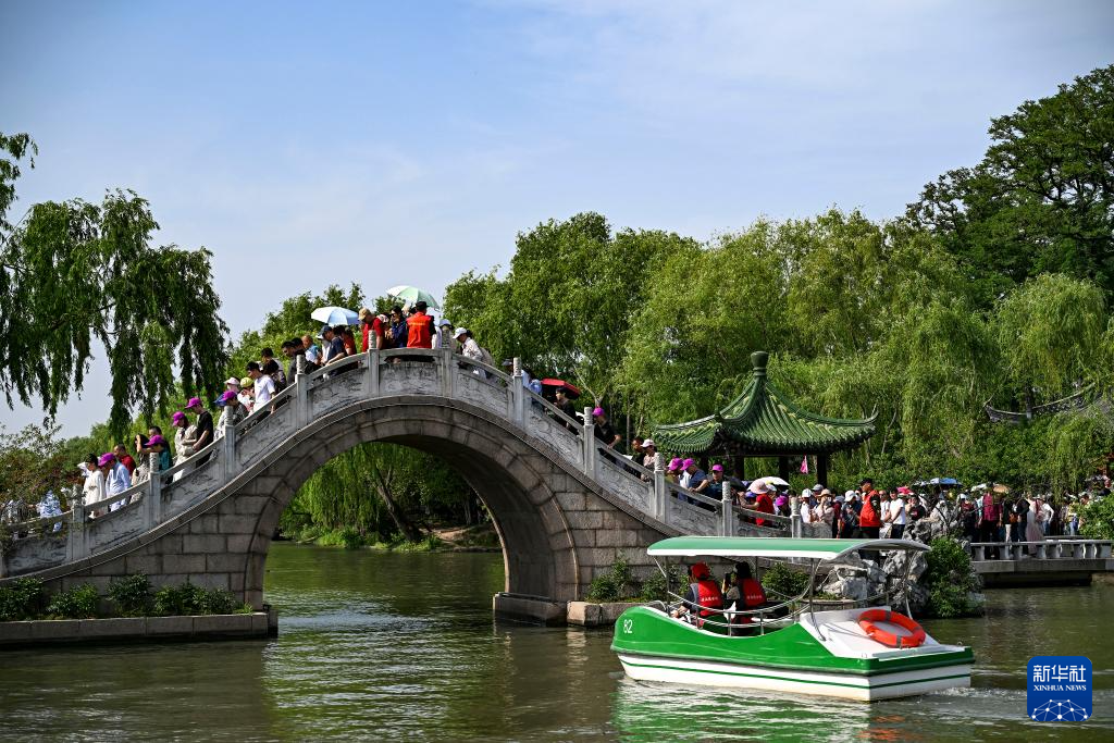 游客在江苏扬州瘦西湖风景区游览(5月19日摄)。