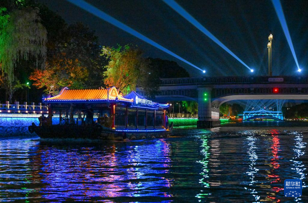 夜晚,华灯初上,古城扬州变成另一番迷人景象。2024年,扬州推出“大运扬州”古运河行进式游船演绎体验项目,游客可乘船观看水上灯光秀和实景演出,了解自吴王凿邗沟以来扬州依托古运河的历史文化演变,仿佛“穿越千年”。