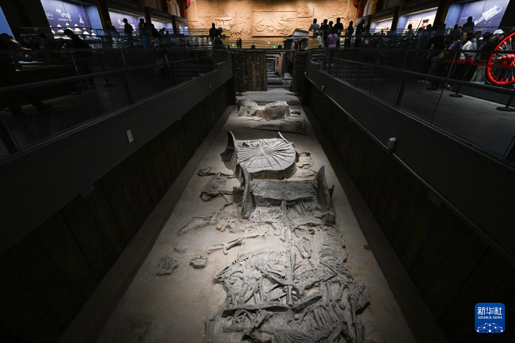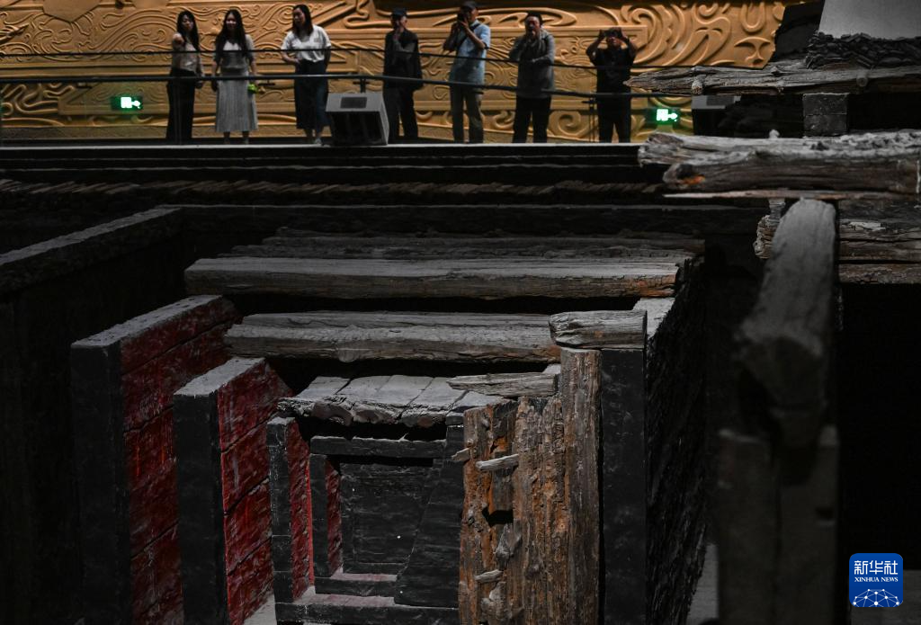 一号墓展区完整展示了汉代“梓宫、便房、黄肠题凑”(由后至前)葬制(5月20日摄)。