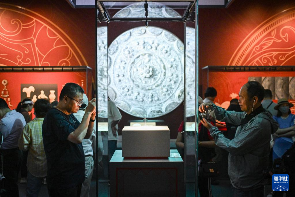 5月20日,观众在观看出土于一号墓的文物鎏金铜铺首。