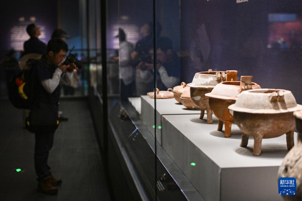 5月20日,观众在拍摄一号墓展区的文物展品。