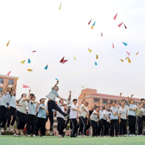 5月22日,在山东省高密市第五中学,高三学生将写有梦想的纸飞机抛向空中。
