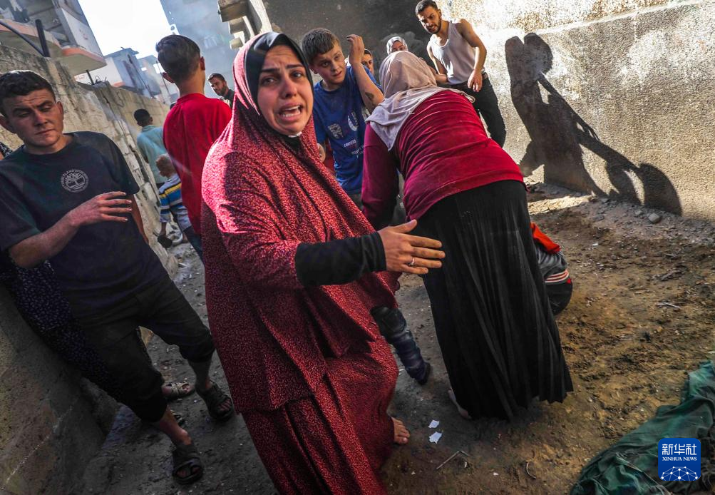 5月21日,在以军空袭加沙地带北部杰巴利耶难民营所在区域后,当地巴勒斯坦人陷入慌乱。