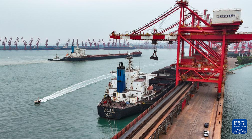 5月23日,船舶停靠在山东省日照港岚山港区进行自动化卸船作业。