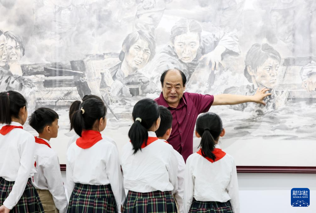 今年是中国人民抗日战争暨世界反法西斯战争胜利80周年,在沂蒙革命老区山东省日照市莒县,小学生们走进沂蒙画派研究院,学习绘画知识,欣赏绘画作品,聆听画作背后的沂蒙故事,感受沂蒙精神,接受爱国主义教育。