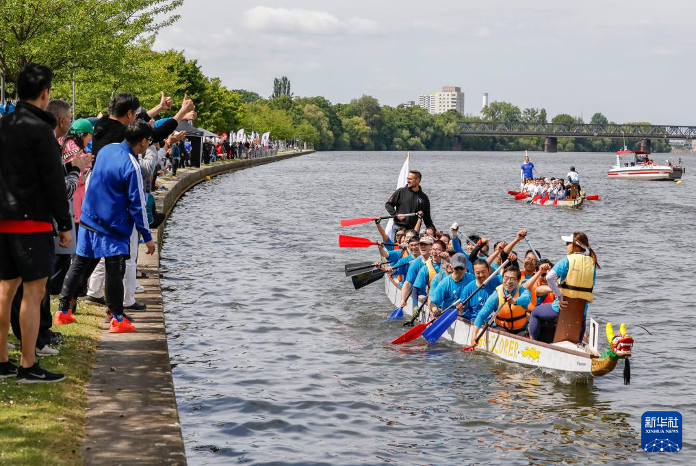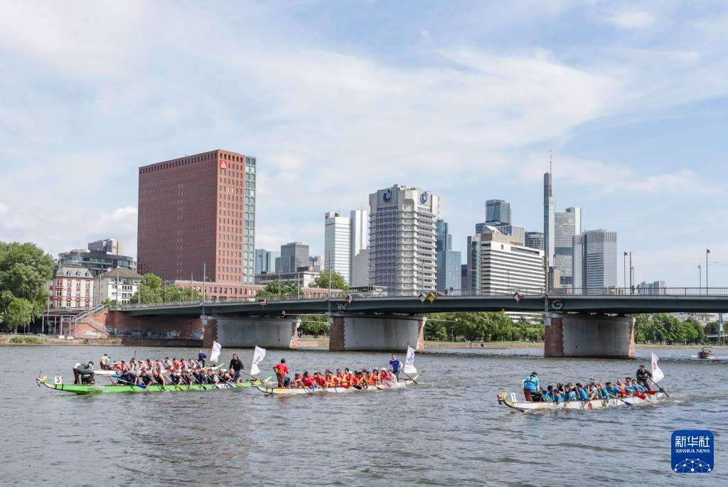 5月24日,人们在德国法兰克福美因河上参加龙舟比赛。