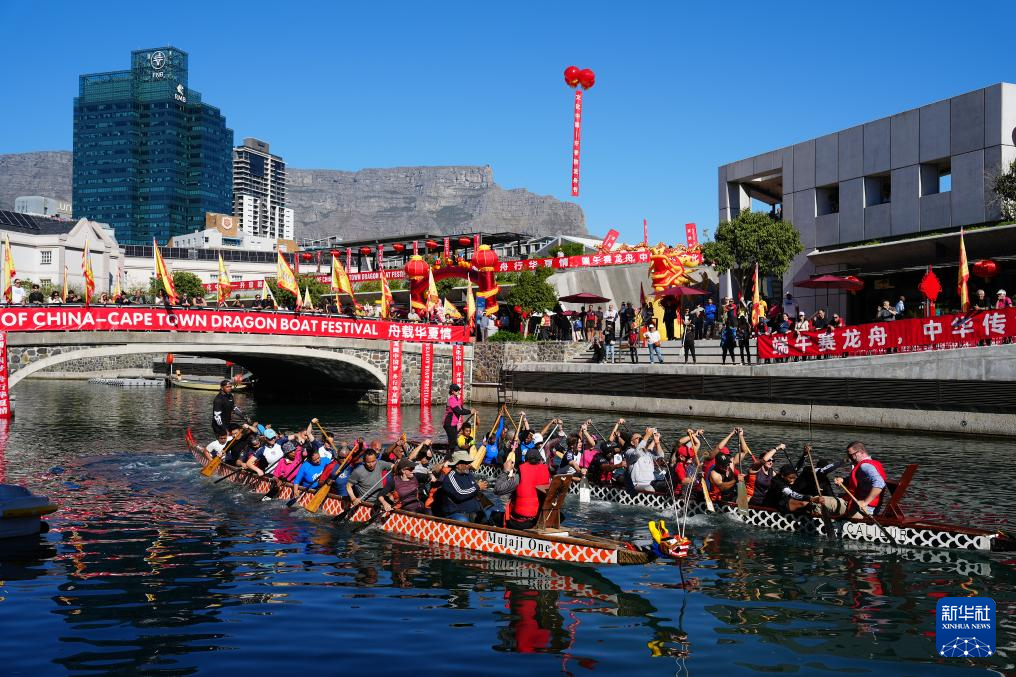 5月24日,人们在南非开普敦参加龙舟比赛。