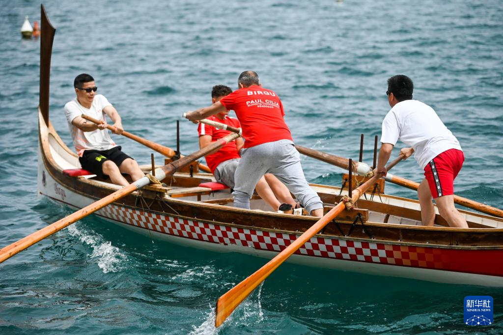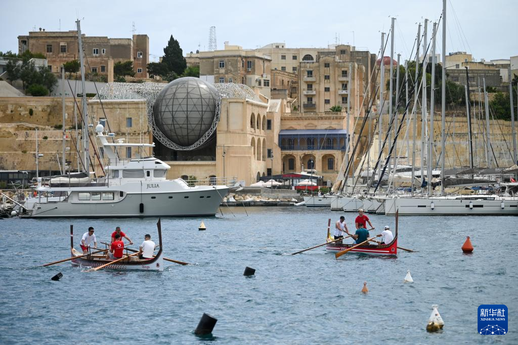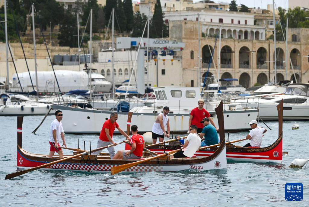5月24日,人们在马耳他比尔古参加龙舟比赛。