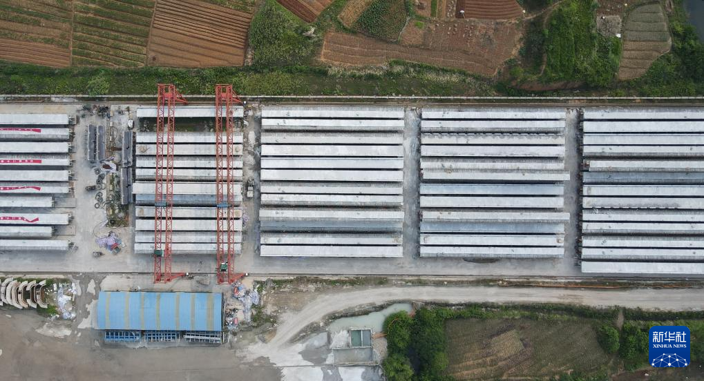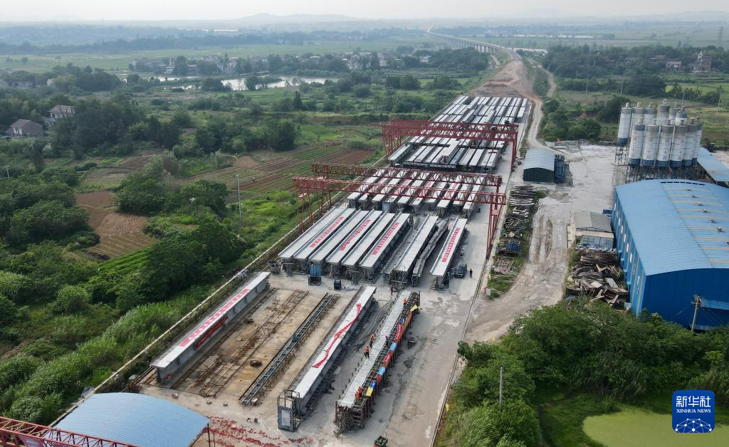 铜陵江北港铁路专用线T梁预制施工现场(5月26日摄,无人机照片)。