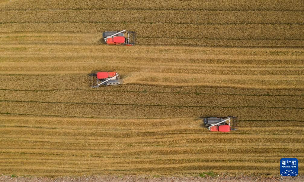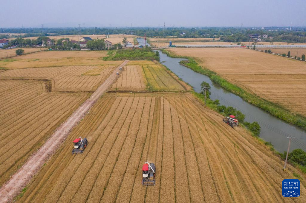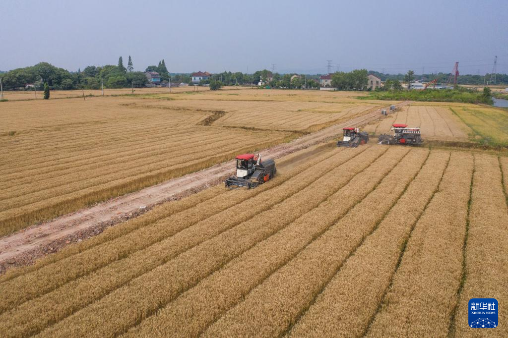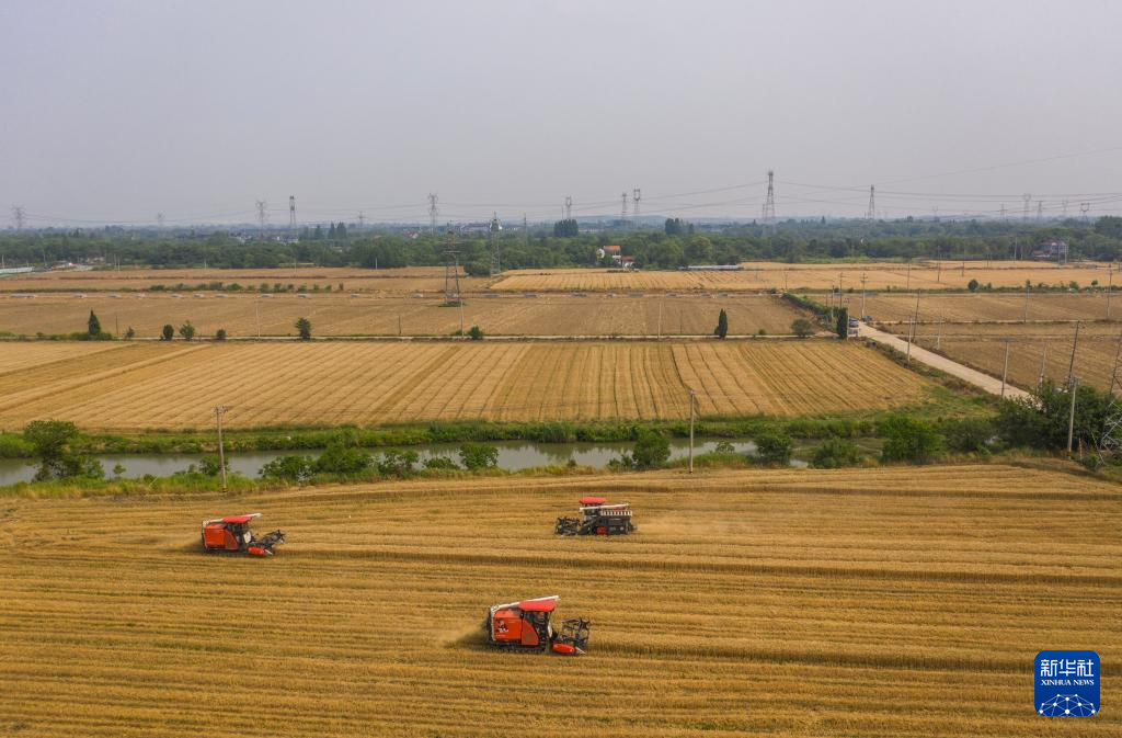 近期,浙江省湖州市长兴县虹星桥镇的万亩小麦迎来收获季,当地种植户抓住晴好天气全面开启小麦收割。